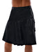 Schwarzer, knielanger Rock von Svenjoyment mit abnehmbarer Tasche. Der feste Webstoff des Rockes liegt oben eng an und springt dann in vielen Falten auf. Bund mit Druckknopfverschluss und unterlegtem Reißverschluss. Die Klappentasche ist mit ihren Karabinerketten abnehmbar.