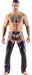 Starkes Duo: schwarze Chaps mit Zwei-Wege-Reißverschluss an den Beininnenseiten und dazu passend ein heißer String - beides aus leicht elastischem Lederimitat.