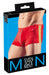 Knallrote Pants im Feuerwehrmann-Look für fantasievolle Rollenspiele. Mit Reflektorstreifen, Ziertasche und raffiniertem Reißverschluss in der Front. Dazu sorgt die Swellfunktion für eine beeindruckende Frontwölbung.