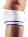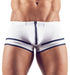 Weiche Mikrofaser-Pants im trendigen Matrosen-Look. Vorne mit extra breitem Reißverschluss und jeweils 3 Zierstreifen am Beinabschluss.