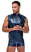 Blaues Shirt von NEK im trendigen Metallic-Mattlook. Ärmellos, eng und körperbetont geschnitten. Mit kleinem Stehkragen und silberfarbenem Reißverschluss vorne. Weich und elastisch für hervorragenden Tragekomfort.