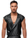 Locker legeres Shirt von NEK im schwarzen edlen Mattlook mit lässig überschnittenem Arm und Stretchbund am Saum. Vorne überlappend offen mit langem, nietenbesetztem Reverskragen. Rundum weich und elastisch für maximalen Tragekomfort.