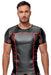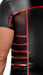 Eng geschnittenes Kurzarm-Shirt von NEK im schwarzen Mattlook mit roten betonenden Kontrast-Streifen. Jeweils seitlich transparenter Feinnetz-Einsatz – auch unter den Armen. Rundum weich und elastisch für maximalen Tragekomfort.