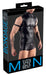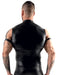Top von Svenjoyment Bondage im schwarzen trendigen Mattlook mit Nieten besetztem Harness (nicht abnehmbar). Harness seitlich mit Ringen, in die beiliegende Fesselriemen für die Arme befestigt werden können. Die Fesselriemen im Mattlook haben verstellbare Klettverschlüsse.