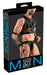 Bauchfreies Top und pofreier Jock von Svenjoyment Bondage aus weichem elastischen Netz mit Mattlook-Details. Top mit fest angenähtem Harness. Jock vorne am Beutel mit praktischen Druckknöpfen zum Öffnen. Beide Teile jeweils seitlich mit einem Ring für die 4 beiliegenden Soft-Fesselriemen mit verstellbaren Klettverschlüssen.