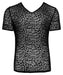Betonendes Shirt von Noir aus feinem transparentem Powernet mit edlem Samtflockprint im Leo-Look. Rundum weich und elastisch für hohen Tragekomfort. Halber Arm und kleiner V-Ausschnitt sorgfältig eingefasst.