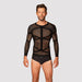 Schwarzes Langarm-Shirt T101 von Obsessive im körperbetonenden Style. Aus weichem elastischen Netz mit eingewebter Riemen-Optik. Trendstyle mit hohem Tragekomfort.