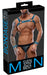 Brustharness, Jock und 2 Handfesseln im Set von Svenjoyment BONDAGE. Extravagante Neopren-Optik in Schwarz mit royalblauen Kontrasten. Harness mit Druckknöpfen schnell an- und abgelegt. Pofreier Jock mit unterlegtem Reißverschluss im Beutel. Am Bund jeweils seitlich ein Ring für die beiliegenden Handfesseln mit verstellbaren Klettverschlüssen.