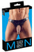 Glänzender Lederimitat-Riostring mit elastischer Front-Öffnung, durch die Penis und Hoden nach außen geschoben werden!