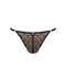 Schwarzer String Severio von Obsessive in extravagant gemusterter Semi-Transparenz. Weich und elastisch für vollen Komfort. Bequemer Gummibund mit kleinem Metall-Element vorne und passend verstellbar.