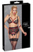 Softer BH, Strapsgurt und Slip ouvert von Cottelli BONDAGE aus elastischer schwarzer Spitze mit raffinierten Details im dunkelroten Mattlook sowie roségoldfarbenen Elementen und coolem Nietenbesatz. BH mit etwas breiteren, verstellbaren Trägern, hinten mit Hakenverschluss. An den Strapsgurt können seitlich an Ringen die beiliegenden Armfesseln mit ihren Karabinerketten eingehakt werden. Der Strapsgurt hat hinten einen Hakenverschluss und verstellbare Strapse. Der bis über den Po schrittoffene Slip komplettiert dieses aufregende Trio.