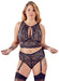 Bralette und Straps-Slip aus weicher elastischer Spitze kombiniert mit Mattlook und roségoldfarbenen Details. Für fesselnde Lustmomente sorgen die abnehmbaren Handfesseln, die mit Karabiner-Ketten am Halsausschnitt des Bralettes befestigt sind. Die Fesseln sind mit einem praktischen Klettverschluss ausgestattet. Das Bralette ist auf Bügel gearbeitet und hat hinten einen Hakenverschluss sowie einen kleinen Clipverschluss oben am Hals. Die verstellbaren Strapse sind vom Slip abnehmbar.
