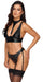 Bralette und Straps-Slip im Set von Cottelli BONDAGE im edlen schwarzen Mattlook mit silberfarbenen Details. Bralette im tiefen Dekolleté mit Ring und Steg bis zum Halsband mit verstellbarem Druckknopf-Verschluss im Nacken. Die breiten Träger teilen sich im Rücken in 4 schmale Träger und sind jeweils passend verstellbar. Taillenhoch geschnittener Straps-Slip mit Druckknopf-Schrittverschluss bis über den Po. Für fesselnde Lustmomente ist hinten am Slip-Bund eine softe Handfessel fest angenäht. Die verstellbaren Strumpfhalter sind vom Slip abnehmbar.