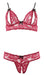 Soft-BH mit offenen Cups und verstellbaren Trägern. Dazu passender Riostring mit komplett offenem Schritt. Mit zarten Zierschleifen.