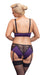 Bralette und Straps-Slip ouvert im Set von Cottelli CURVES im edlen Mix aus lilafarbenen Satin und schwarzer feiner Spitze. Das Bralette punktet mit seinen gekreuzten Stretchbändern im Dekolleté, der Taillen-Slip mit seiner einladenden Öffnung im Schritt. Die elastischen breiten Träger sind verstellbar, genauso wie die Strumpfhalter, die vom Slip auch komplett abnehmbar sind.