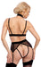 Soft-BH und Straps-Slip ouvert im Set von Abierta Fina. Beide Teile in schwarzer Stretch-Transparenz mit raffinierten Details aus Samt und roségoldfarbenen Metallelementen. Der aufregende BH fasziniert mit seinen schillernden Kettchen, die zum Samt-Halsband und über die Schulter führen - und die geschlitzten Cups sind Verlockung pur. Der Straps-Slip provoziert mit seinem komplett offenen Schritt, durch den ein stimulierendes Kettchen führt. Der Venushügel wird zusätzlich von einem Strassring geschmückt. Die Strumpfhalter und BH-Träger sind für optimale Passform verstellbar. Die Kettchen sind alle abnehmbar.
