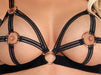 BH und Slip in aufregender Harness-Optik im Ouvert-Set von Cottelli LINGERIE. Zeigefreudiger Style mit weichen Stretchbändern und elastischen Riemen, verbunden mit roségoldfarbenen Ringen. BH mit Schließe im Rücken und passend verstellbaren Trägern. Der taillenhoch geschnittene Slip verführt mit 2 Stretchbändern im komplett offenem Schritt und Oberschenkelriemen an verstellbaren Strapsen (ohne Clips).