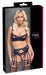 Schwarzes Straps-Set von Cottelli LINGERIE mit Bügel-BH, Strapsgürtel, Riostring und stylischen Strumpfbändern. Mit feiner weicher Stretch-Spitze gearbeitet, Strumpfbänder aus soften Stretchbändern. Bügel-BH mit halben Cups, darüber Spitze mit verführerischen Cut-outs. Die BH-Träger und der Hakenverschluss im Rücken sind passend verstellbar. Genauso wie der Hakenverschluss hinten im Taillen-Strapsgurt und die insgesamt 8 Strumpfhalter (6 vorne, 2 hinten). Der Riostring verführt mit einer offenen Front.
