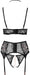Bralette, Strapsgurt und Slip ouvert vereint im Set von Abierta Fina. Alles ist aus feiner elastischer Spitze gearbeitet und mit roségoldfarbenen Elementen, sowie mit Strass verzierten Kettchen geschmückt. Das Bralette mit seinen geschlitzten Cups erlaubt sinnliche Zugriffe. Der komplett schrittoffene Slip verführt mit einem stimulierenden Kettchen. Und der luftige Strapsgurt in Schnüroptik rundet das freizügige Ensemble elegant erotisch ab. Für optimale Passform sind Träger, Neckholder und Strumpfhalter verstellbar. Die Kettchen sind alle abnehmbar.