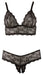 Filigrane schwarze Spitze: zarter Soft-BH ohne Verschluss und mit verstellbaren Trägern plus raffinierter String mit offenem Schritt für leidenschaftliche Stunden zu zweit.