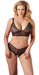 Filigrane schwarze Spitze: zarter Soft-BH ohne Verschluss und mit verstellbaren Trägern plus raffinierter String mit offenem Schritt für leidenschaftliche Stunden zu zweit.