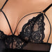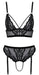 Bralette und Straps-Slip ouvert im Set von Cottelli LINGERIE im schwarzen feinen Mix aus Spitze und Powernet. Rundum weich und elastisch für hohen Tragekomfort. Der länger geschnittene BH punktet mit seinen Stretchriemchen im Dekolleté, der Taillen-Slip mit seinem komplett offenem Schritt. Die Träger sind passend verstellbar, genauso wie die Strumpfhalter, die vom Slip auch komplett abnehmbar sind.