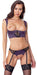 Longline-Hebe und Straps-Slip ouvert von Abierta Fina aus elastischem violettfarbenem Satin mit feinen schwarzen Spitzeneinsätzen und garniert mit roségoldfarbenen strassbesetzten Ketten. Die Bügel-Hebe mit leicht gepolsterten Cups bringt den Busen in Hochform und direkt ins Blickfeld. Die Ketten sowie das Halsband sind von der Hebe abnehmbar. Die breiten Träger verlaufen im Rücken als 4-fach-Träger und sind verstellbar. Der Straps-Slip ist vorne im Materialmix und hinten komplett aus Spitze gearbeitet. Durch den einladend offenen Schritt führen drei stimulierende Schrittketten, die ebenfalls abnehmbar sind, genauso wie die verstellbaren Strumpfhalter.