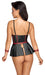 Longline-Hebe mit Volant, String ouvert und 2 Armfesseln im Set von Cottelli BONDAGE. Im edlen schwarzen Mattlook mit roten Kontraststreifen in taillenbetonender Mieder-Optik und silberfarbenen Details. Die Longline-Hebe hebt mit ihren leicht gepolsterten Bügel-Cups den Busen perfekt an und präsentiert diesen offensiv mit Stretchriemchen umrahmt. Der ausgestellte, hinten offene Röckchen-Volant umspielt sinnlich die Hüften. An den Trägern vorne mit Schmuckelementen als zusätzliche Eyecatcher. Die Träger, die Dekolleté-Riemchen und der Hakenverschluss im Rücken sind passend verstellbar. Am Taillenband insgesamt 4 Ringe für die beiden beiliegenden soften Armfesseln mit ihren Karabiner-Ketten. Die Fesseln sind mit Klettverschlüssen verstellbar. Der dazu passende kleine String ist im Schritt einladend offen.