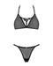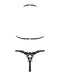 Transparentes schwarzes Set Celia Noir von Obsessive mit Soft-BH und String. Weiches elastisches Feinnetz mit hohem Tragekomfort. Zwischen den Cups und über dem Po mit hochwertiger floraler Guipure-Spitze. Der BH ist am Neckholder und im Rücken passend verstellbar.