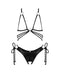 Schwarzes Ouvert-Set Cordellis von Obsessive mit Riemen-BH und String. Beides mit weichen langen Bondage-Kordeln, die individuell gebunden werden. Die BH-Träger und der Unterbrustriemen sind passend verstellbar. Der String im aufregenden Wetlook ist im Schritt offen.
