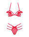 Rotes Set Giftella von Obsessive mit Soft-BH und String. Weiches semi-transparentes Stretchmaterial in stylischer Riemenoptik und mit dekorativen Zierschleifen. BH mit Neckholder zum Binden sowie Bindeschleife im Rücken.