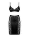 BH und Rock als schwarzes Set Blanita von Obsessive aus Stretch-Satin und feiner Spitze. Weich und elastisch für höchsten Tragekomfort. Soft-BH mit Hakenverschluss im Rücken, die Träger sind passend verstellbar. Der knielange, körperbetonende Etuirock ist mit einem kleinen Gehschlitz und Hakenverschluss im Rücken versehen.