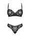 Dessous-Set Serena Love von Obsessive mit Bügel-BH und String aus feiner schwarzer Blütenspitze. Rundum weich und elastisch für hohen Tragekomfort. BH mit verstellbarem Hakenverschluss im Rücken. Auch die Träger sind verstellbar.