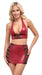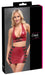 Bauchfreies Neckholder-Top und enger Minirock im Set von Cottelli PARTY. Beides im edlen roten Wetlook mit schwarzen Spitzen-Einsätzen und darüber stylische Riemchen mit silberfarbenen Ringen. Rundum weich und elastisch für höchsten Tragekomfort. Rückenfreies Top mit Druckknopf-Neckholder und Spitzen-Einsatz vorne. Kurzer Rock mit Riemchen geschmückten Spitzen-Einsätzen jeweils seitlich.