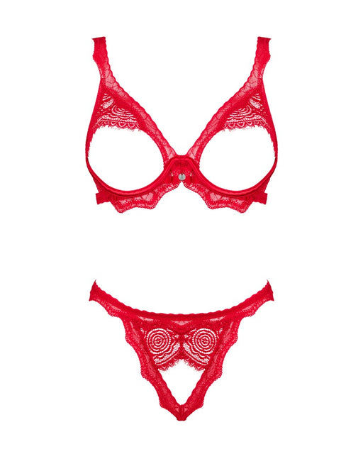 Aufregend ouvert!Rotes Ouvert-Set Bergamore von Obsessive mit Bügel-BH und String. Aus weicher elastischer BlütenSpitze. Eingearbeitete Cup-Bügel h...