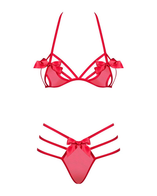 ObsessiveAuf LagerWie ein Geschenk!Rotes Set Giftella von Obsessive mit Soft-BH und String. Weiches semi-transparentes Stretchmaterial in stylischer Riemenoptik und ...