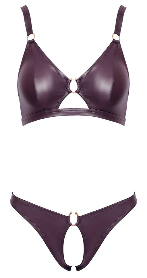 Erotischer Wetlook-Style in toller Farbe!Softer BH und Slip ouvert im Set von Cottelli LINGERIE. Beides im lilafarbenen Wetlook – weich und elastis...