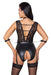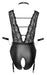 Extra tief dekolletierter Strapsbody ouvert von Cottelli BONDAGE mit transparentem Oberteil aus feiner Spitze und schrittoffenem Slipteil im edlen Mattlook. Im Rücken ebenfalls ein tiefer V-Ausschnitt mit Stretchbändern, die alles schön zusammenhalten. An dem Gürtel sind an Ringen die Strumpfhalter fest angebracht. Am Frontring des Gürtels kann die Karabinerkette mit dem Halsband befestigt werden - und an den Ringen seitlich die beiliegenden Fesselriemen mit den Karabinerketten. Gürtel und Strumpfhalter sind in der Passform verstellbar, der Gürtel mit den Strapsen kann auch ganz abgenommen werden. Die Fesselriemen haben verstellbare Klettverschlüsse.
