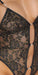 Elegant erotischer Stringbody von Abierta Fina aus schwarzer Blütenspitze mit eingewebten goldfarbenen Metallicfäden. Die komplett offene Front wird nur durch 3 dekorative Glitzerstege fest zusammengehalten. Auch Glitzerelemente vorne an den verstellbaren Trägern. Im nahezu freien Rücken sowie über dem freien Po sorgen verstellbare Stretchriemchen an goldfarbenen Ringen für einwandfreien Sitz.