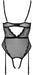 Atemberaubender Stringbody von Cottelli LINGERIE im transparenten Mix aus zarter Spitze und feinem Powernet. Schmiegt sich rundum weich und elastisch hautnah komfortabel an. Extra tiefes Dekolleté in verführerischer Stretchbänder-Optik, um die Taille ein dekoratives Samtband. Die Träger sind passend verstellbar. Im offenen Schritt mit stimulierender Perlenkette, die abgenommen werden kann. Auch die verstellbaren Strumpfhalter sind komplett abnehmbar.