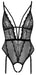 Atemberaubender Stringbody von Cottelli LINGERIE im transparenten Mix aus zarter Spitze und feinem Powernet. Schmiegt sich rundum weich und elastisch hautnah komfortabel an. Extra tiefes Dekolleté in verführerischer Stretchbänder-Optik, um die Taille ein dekoratives Samtband. Die Träger sind passend verstellbar. Im offenen Schritt mit stimulierender Perlenkette, die abgenommen werden kann. Auch die verstellbaren Strumpfhalter sind komplett abnehmbar.