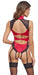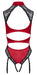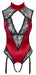 Aufsehenerregender Straps-Body von Cottelli LINGERIE aus edlem rotem Satin mit Einsätzen aus feiner schwarzer Spitze. Rundum weich und elastisch für höchsten Tragekomfort. Raffinierte Schnittführung mit Satin-Halsband zum Knöpfen, schulterbedeckender Spitze und schönem großen Dekolleté-Ausschnitt. Im nahezu freien Rücken mit zwei verstellbaren Hakenverschlüssen. Durch den offenen Schritt führen zwei Stretchriemen. Die Strumpfhalter sind passend verstellbar und auch komplett abnehmbar.