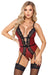 Body ouvert von Abierta Fina im edlen roten anschmiegsamen Mattlook mit silhouetteführenden schwarzen Spitzeneinsätzen vorne und hinten. Ein fest angenähtes Taillenband zur zusätzlichen Betonung. Tiefes Dekolleté mit Verbindungsriemchen und 2 abnehmbaren silberfarbenen Glitzerketten. Auch die stimulierende Kette im offenen Schritt ist abnehmbar, genauso wie die verstellbaren Strumpfhalter. Im tiefen Rückenausschnitt 2 Stretchriemchen mit Clipverschlüssen. Die Träger sind passend verstellbar.