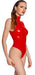 Body von Black Level komplett im knallroten Lackglanz. In figurnaher Schnittführung mit hohen Beinausschnitten. Vorne mit unterlegtem 2-Wege-Reißverschluss, der vom Stehkragen durch den Schritt bis über den Po verläuft und sich von beiden Seiten schnell öffnen lässt.