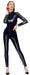 Langarm-Overall von Black Level komplett im schwarzen Lackglanz. In figurnaher Schnittführung mit langem schmalem Bein. Der Clou ist der praktisch-erotische 2-Wege-Reißverschluss, der vom Stehkragen durch den Schritt bis über den Po verläuft und sich von beiden Seiten schnell öffnen lässt.