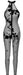 Schulterfreier Overall von Noir mit langem Bein. Komplett aus feinem schwarzen Stretchnetz mit Samtflockprint in Blütenranken-Optik. Schmiegt sich weich und elastisch an wie eine zweite Haut. Mit praktischem 3-Wege-Reißverschluss, der vom Halsband durch den Schritt bis über den Po verläuft!