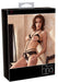 Der schwarze Body lässt tief blicken, denn er besteht fast nur aus Samtriemen, die Ihren Kurven einen eleganten Rahmen geben und für optimalen Tragekomfort verstellbar sind. Der Busen wird von offenen Cups aus zarter Spitze umrahmt und auch der im Schritt offene Slip besitzt Einsätze aus Spitze. Zusätzlich verzieren viele goldfarbene Details den Body, wie etwa die mit Strass besetzten Ringe an Hals und Slip. 90% Polyamid, 10% Elasthan.