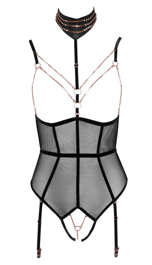 ObsessiveAuf LagerExtravaganter Einteiler!Body Olvidia von Obsessive aus extravaganter schwarzer Spitze, vorne mit nudefarbenem Tüll unterlegt. Rundum weich und elas...