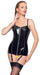 Extra lang geschnittene Lack-Vollbrust-Corsage von Black Level in glänzendem Schwarz mit verstell- und sogar ganz abnehmbaren Trägern und Strumpfhaltern. Eingearbeitete Formstäbe sorgen für perfekten Sitz und die variable Schnürung im Rücken ist ein echter Blickfang. Für bequemes An- und Ausziehen ist vorne ein durchgehender Metall-Reißverschluss eingearbeitet.