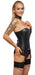 Trägerlose, ungefütterte Straps-Corsage von ZADO aus weichem Lammleder mit silberfarbenen Metalldetails. Eingearbeitete flexible Formstäbe und unterlegte variable Schnürung im Rücken für eine schöne taillierte Silhouette. Vorne mit durchgehendem Reißverschluss für bequemes An- und Auskleiden. Die Strumpfhalter sind verstellbar.